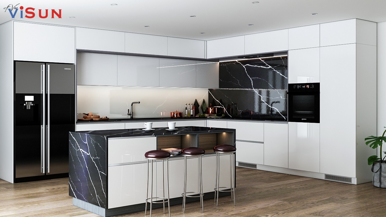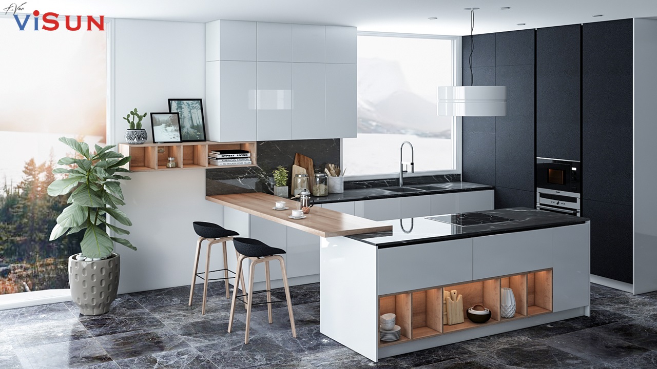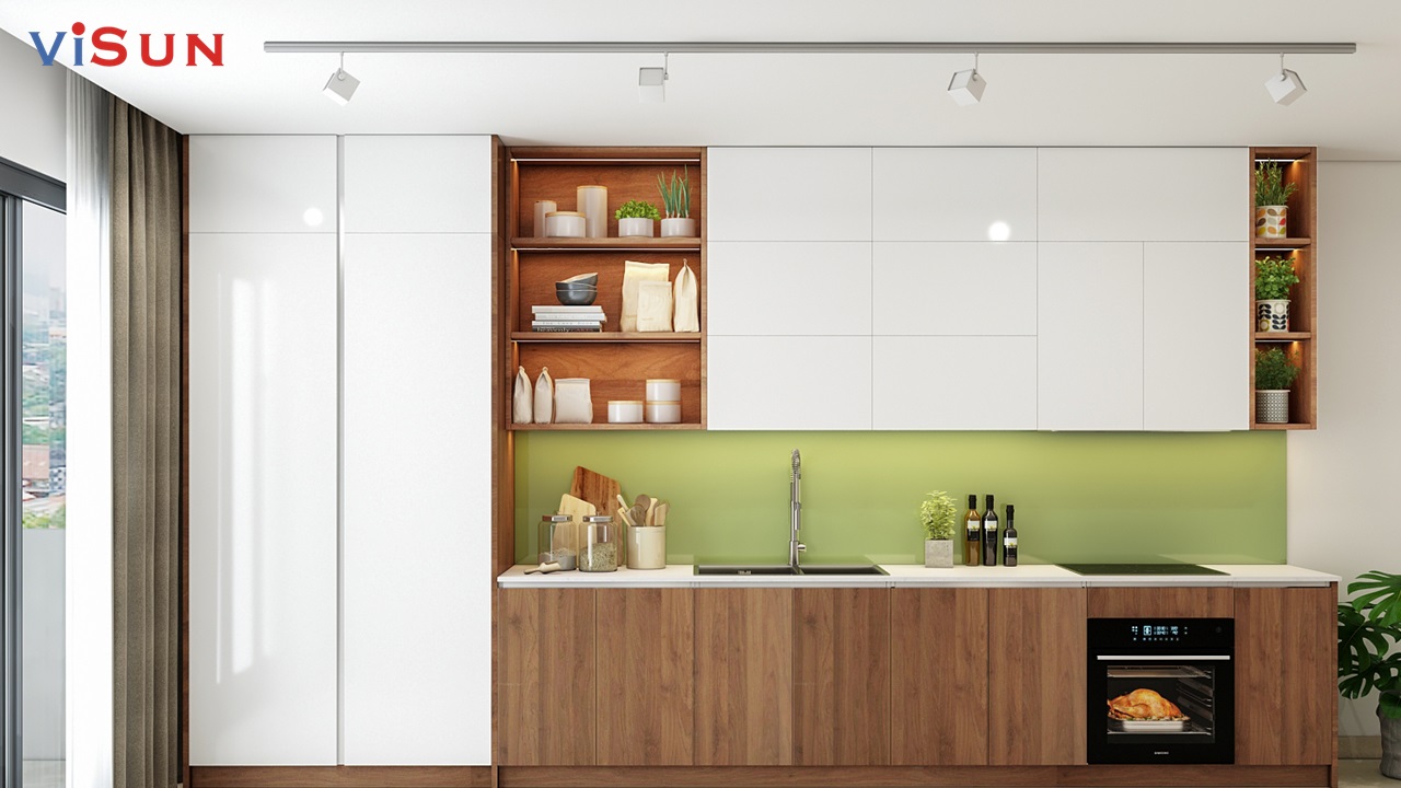 Điểm nhấn mạnh là trong thiết kế có thể sử dụng được, mọi thứ được sắp xếp một cách rõ ràng và nằm trong tầm tay. Phong cách nhà bếp của bạn không phải đangkêu gọi một không gian làm việc khó khăn, mà nó đang nằm trong tầm tay của bạn rất tiện dụng – bạn biết chính xác những gì bạn muốn và cách bạn sẽ sử dụng nó.