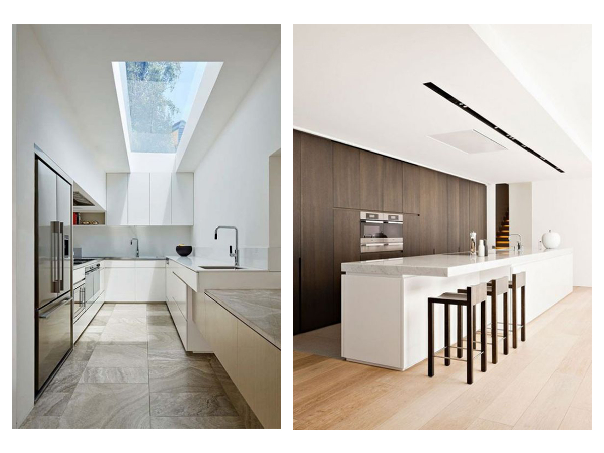 Thiết kế phòng bếp theo chủ nghĩa tối giản là xu hướng của thế kỉ 21 – phong cách, gọn gàng, chức năng và sạch sẽ. Có rất nhiều ý tưởng cho nhà bếp của bạn, chẳng hạn kết hợp màu đen và màu trắng, kết hợp các vật liệu đá, bê tông, gỗ tự nhiên, tối đa hoa ánh sáng ở mọi ngóc ngách.